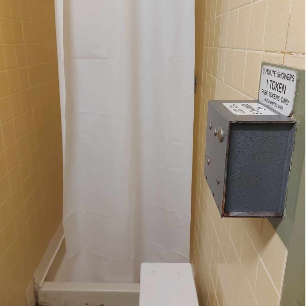 To będzie zależało od konkretnego kampingu. Niektóre są starsze, ale mają dostęp do bieżącej wody przez część roku i wodę pitną, niektóre są nowe, wyremontowane i wyglądają jak w hotelach: toalety są duże, znajdują się w nich miejsca do przewijania, prysznice mają półki, haczyki. Na wszystkich polach toalety i prysznice, nowsze i starsze, były bardzo czyste.