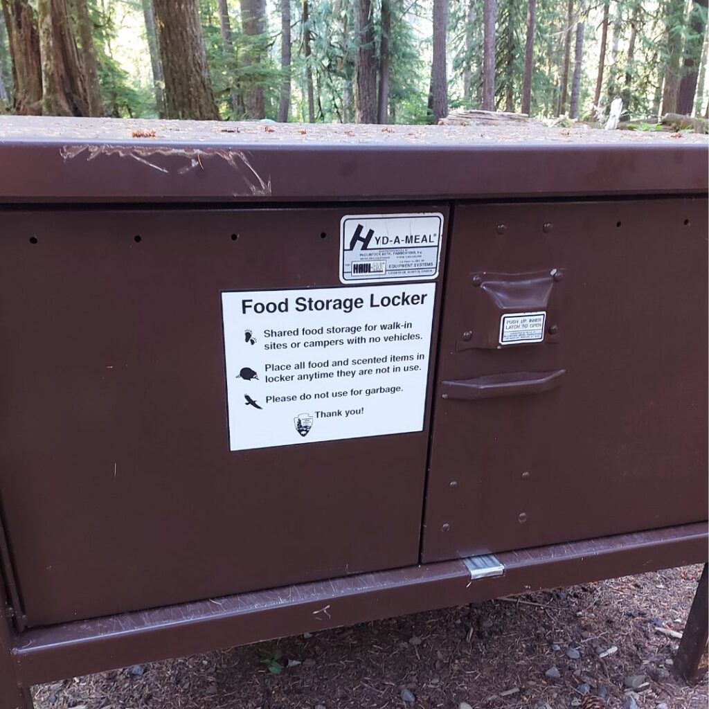 Czasami na polach namiotowych znajdują się metalowe szafki i osoby, które nie mają aut, w których mogą schować jedzenie (czyli sity dla pieszych i rowerzystów), proszone są o zamknięcie jedzenia w tych szafkach, aby nie przyciągać dzikiej zwierzyny.