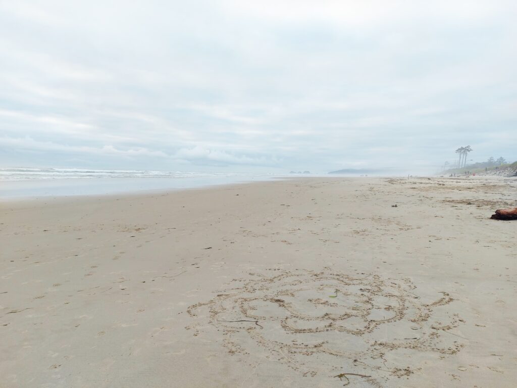 Przepiękna plaża nad oceanem, dwie minuty od naszego kampingu w Oregonie. Początkowo chcieliśmy zatrzymać się w hotelu (od czasu do czasu chcemy przespać się w łóżku, nie na materacu, szczególnie podczas marnej pogody), ale zajechaliśmy na te pole i trafiliśmy na ostatni wolny site. Plaża była pusta, bo dostęp do nie mieli w zasadzie wyłącznie osoby z kampingu. Tak więc zasnęliśmy i obudziliśmy się do szumu oceanu. Miejsce na tym polu możecie zarezerwować online >tutaj<.