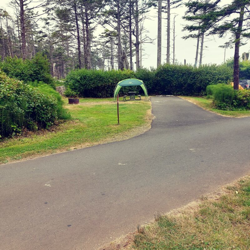 Wszystkie wyglądają bardzo podobnie. To wydzielona przestrzeń, czasem oddzielona od sąsiednich sitów np żywopłotem, starymi powalonymi drzewami, czasem nie. Na wszystkich, których byliśmy jest też stół i miejsce na palenisko. Sity dla przyczep kampingowych i aut RV wyposażone są dodatkowo w dostęp do energii elektrycznej. RV to zintegrowany dom na kółkach, czyli taki kamper na sterydach. Niektóre są większe niż moja kawalerka.